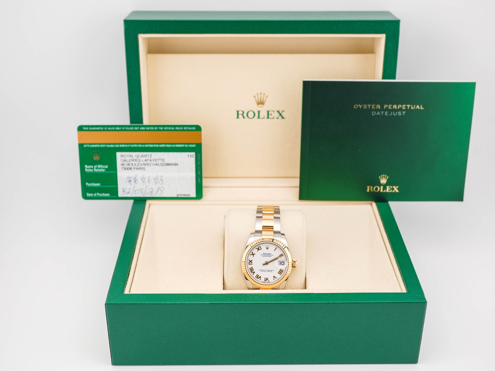 Rolex Datejust 31 White Roman Dial on Oyster 178273 Card 2018