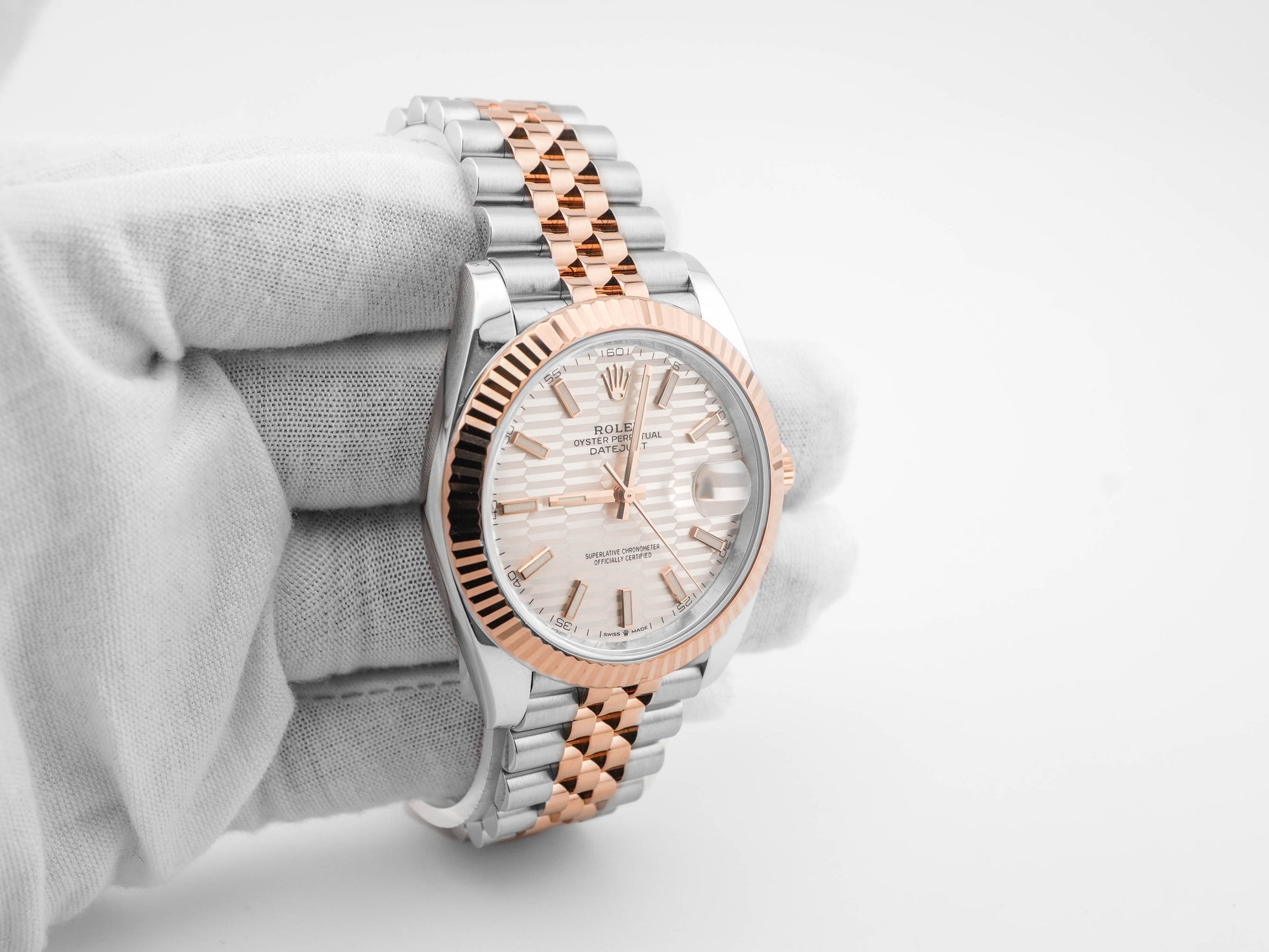 The Rolex Datejust 41 is a distinguished blend of sophistication and innovation, epitomized by its captivating Silver Fluted Motif Index dial. This model is paired with an iconic fluted bezel and the elegant Jubilee bracelet, made of stainless steel and rose gold, enhancing its luxurious appeal. The timepiece, identified by reference number 126331, showcases Rolex's renowned craftsmanship and attention to detail, making it a coveted choice for horology enthusiasts.