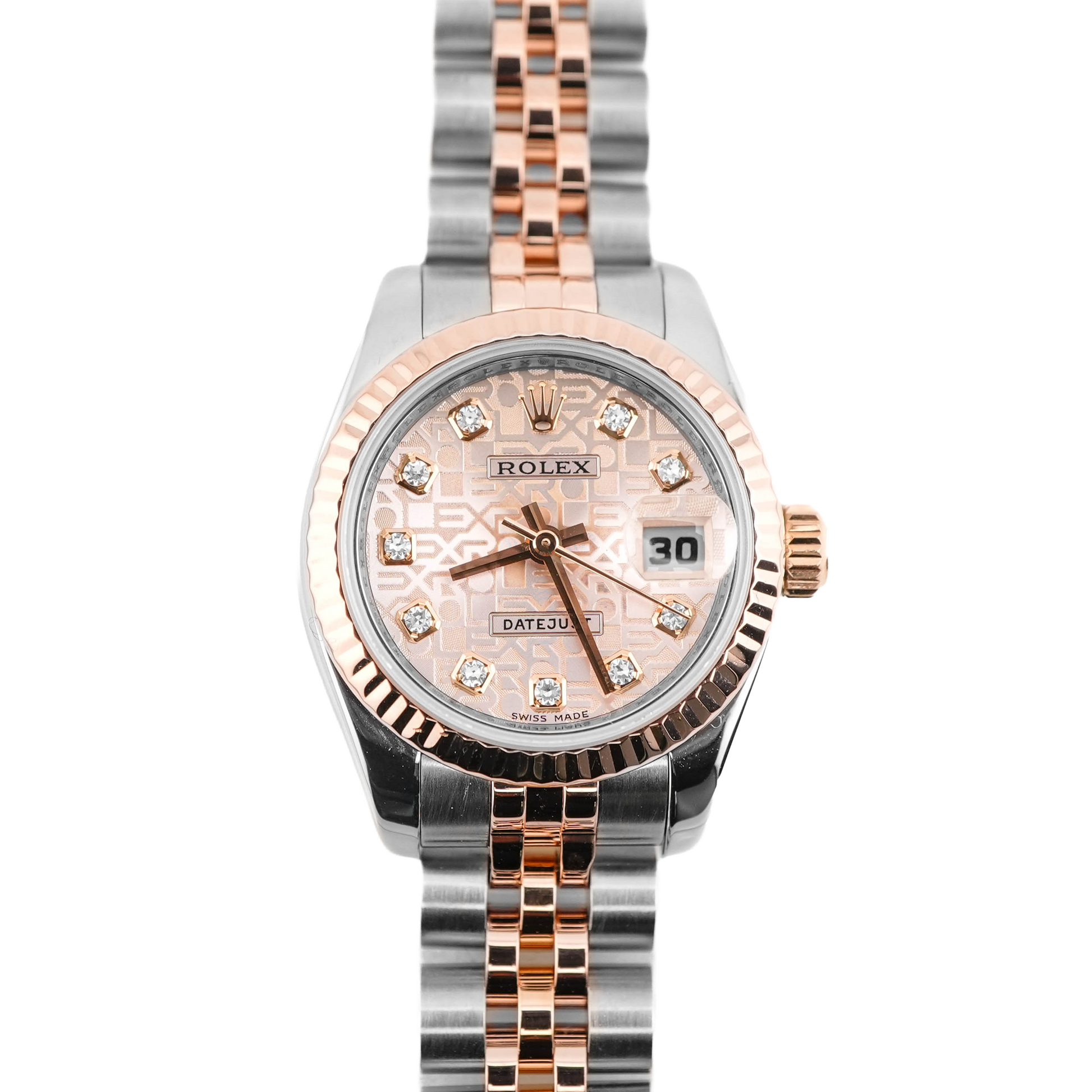 The Rolex Datejust Lady is a stunning expression of elegance and refinement, perfectly suited for those who appreciate sophisticated timepieces. This particular model features a captivating Pink Jubilee Diamond dial, which pairs beautifully with its fluted bezel and Jubilee bracelet. Crafted from stainless steel and rose gold, and with a size of 26mm, this watch exemplifies Rolex's dedication to both style and durability. With the reference number 179171, this watch is a testament to the brand's legacy of quality and attention to detail.