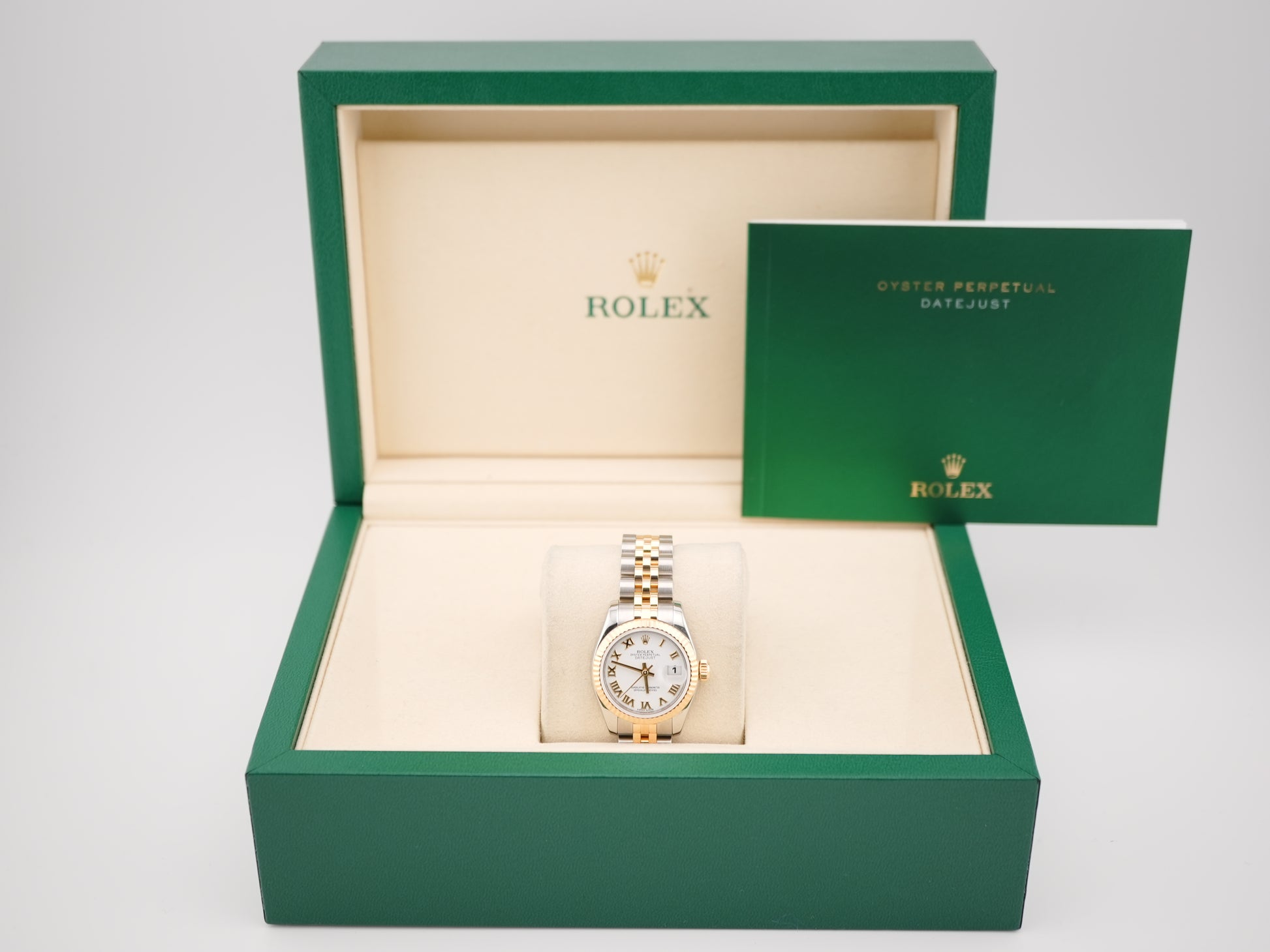 The Rolex Datejust Lady is a stunning example of Rolex's dedication to precision and elegance in watchmaking. This exquisite timepiece features a timeless white Roman dial and a classic fluted bezel, all set in a 26mm case made of stainless steel and yellow gold. The Jubilee bracelet adds to its luxurious appearance, offering both comfort and sophistication, making it a perfect match for any refined taste. With the reference number 179173, this watch is made to impress with its iconic design and flawless craftsmanship.